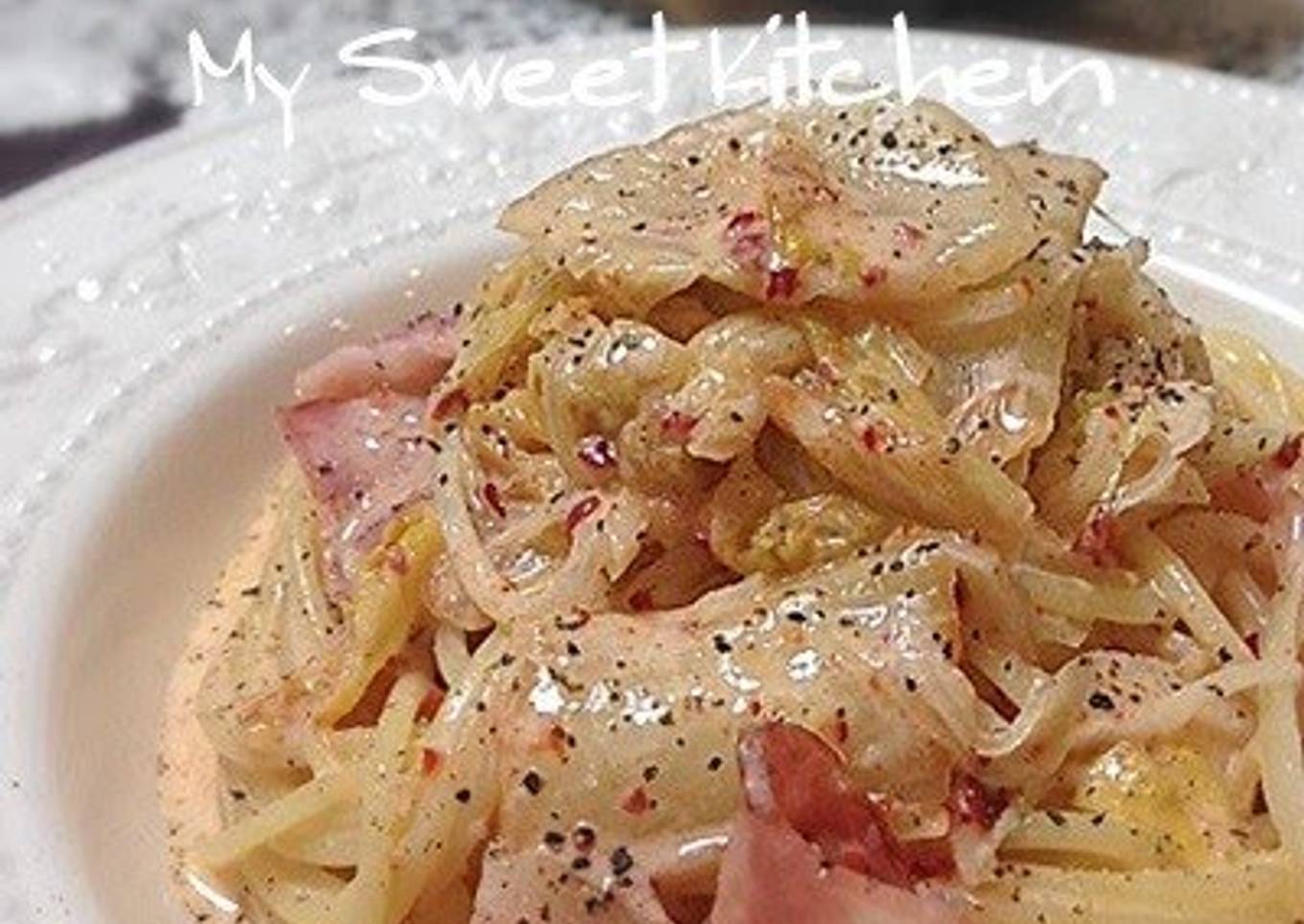 Steps to make to make Addictive Kimchi and Bacon Cream Pasta