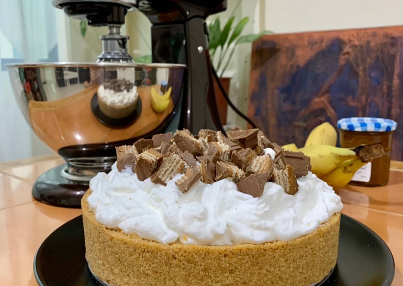 - Top the pie with whipped cream and garnish with chopped crunchy bars.