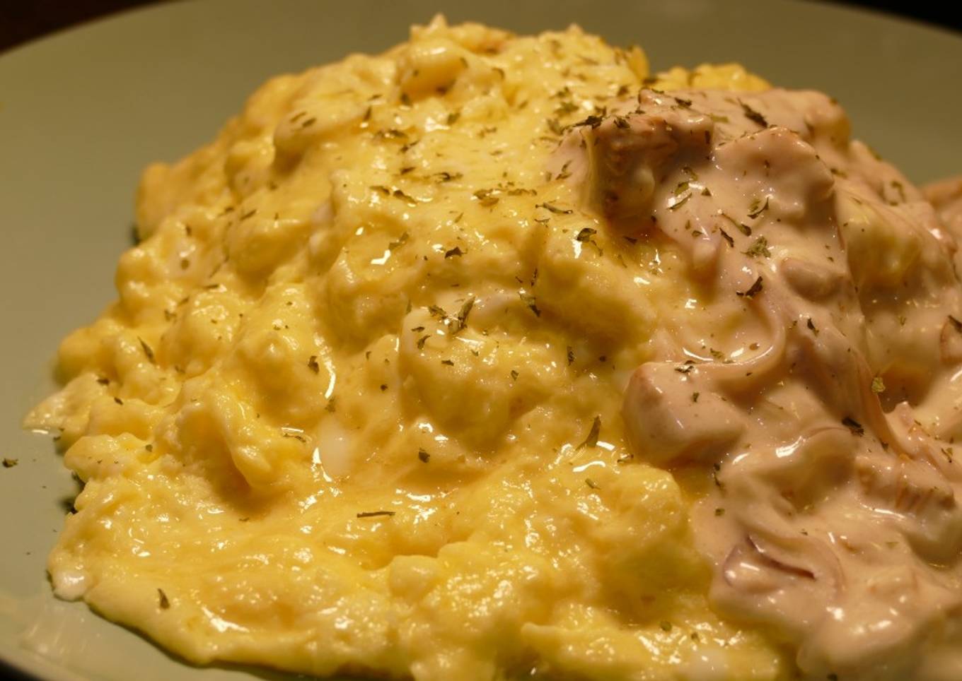 - Slide to a dish on the pilaf when it's cooked as fluffy. Put the cream sauce on it, pour some truffle oil and dried parsley on top. Bon Appetit (^^♪