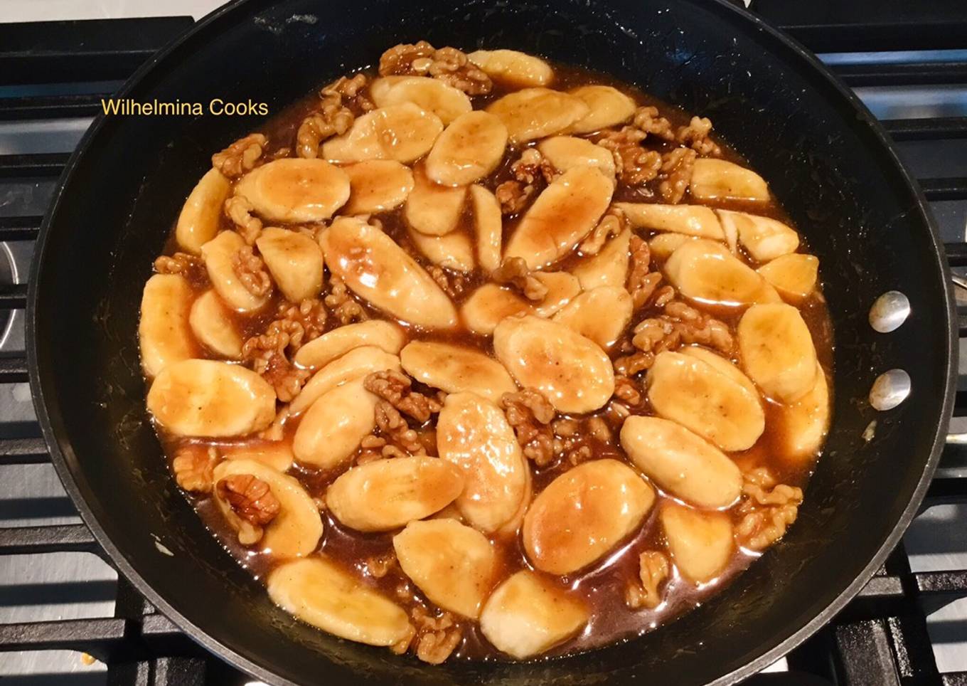 Steps to make to make Banana Foster with Walnuts