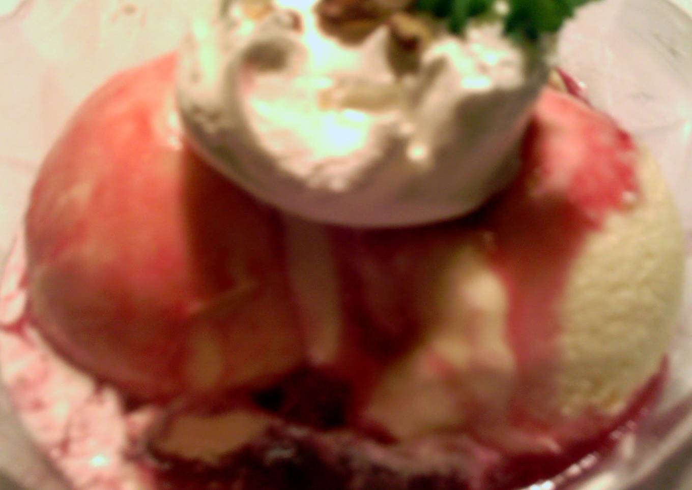 - put in refrigerator for 24 hours to let set as a syrup.once the syrup is set, add 2 scoops if ice cream in a bowl, add 1 tablespoon of pomegranate syrup ontop of ice cream, add 1/2 tablespoon cool whip, top with a pinch of pecans, done set it in freezer,until all 4 are made them serve, yum yum good.