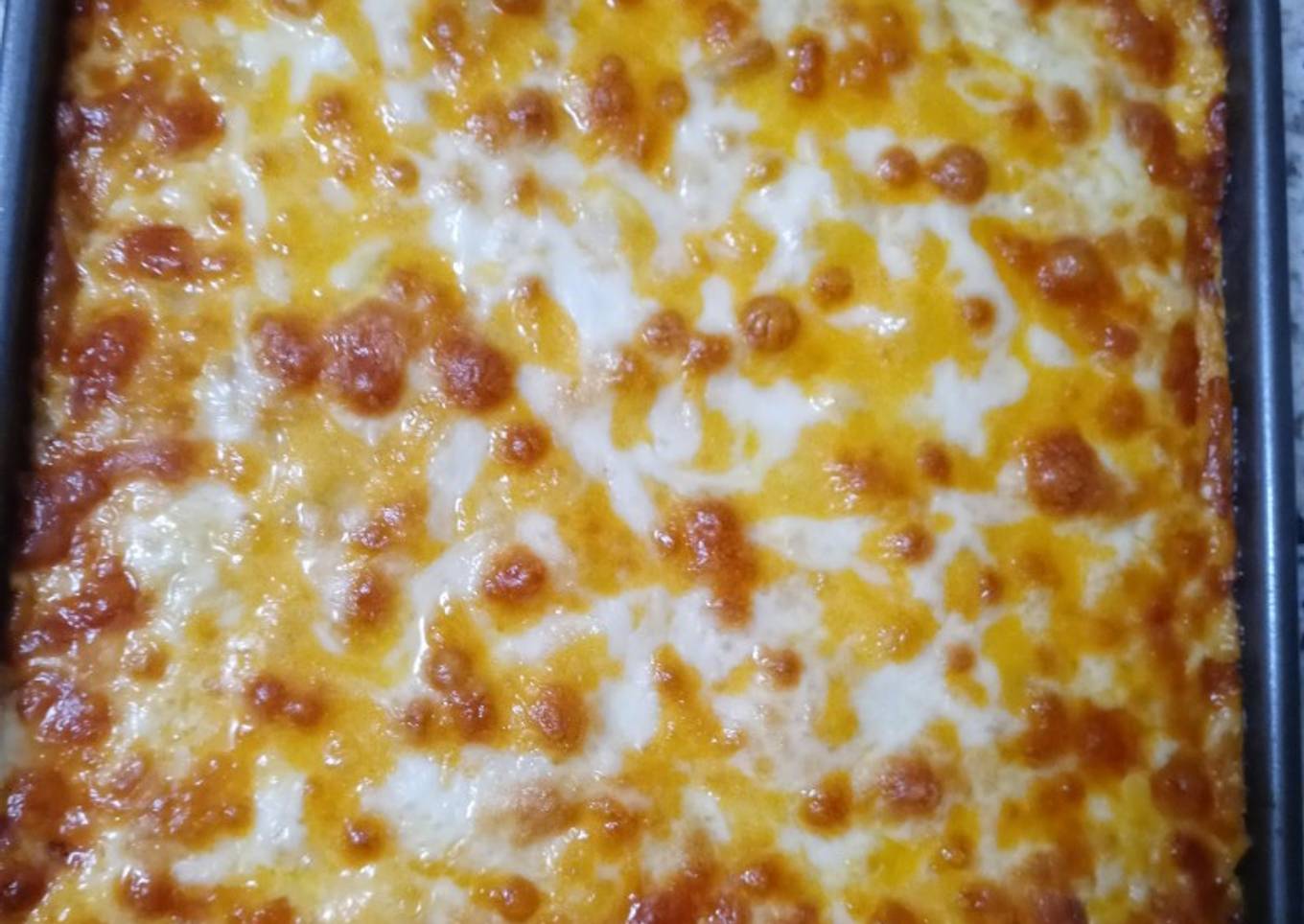 - Add top layer of cheese and bake for 30-40 mins or until milk is cooked out and cheese is melted and bubbly