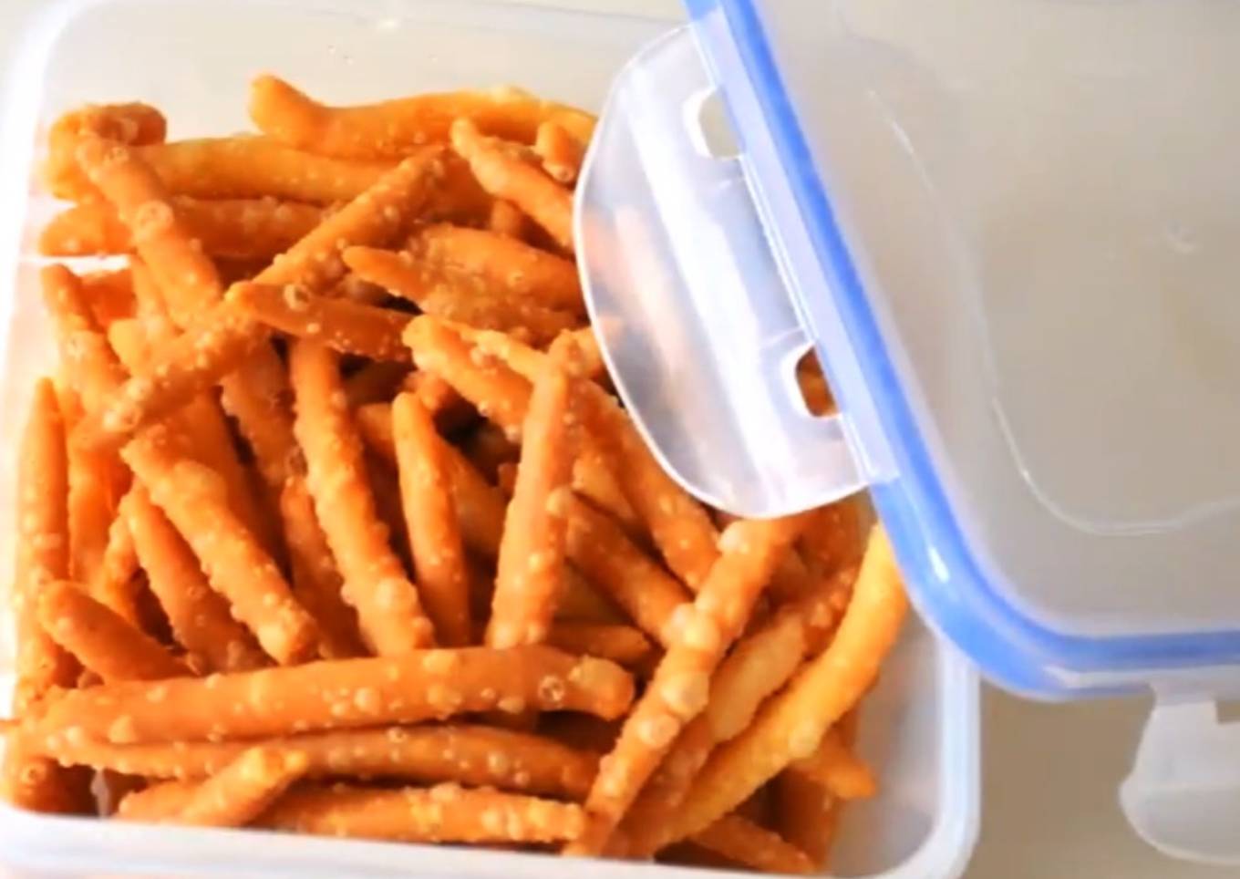 - Heat oil in a pan. Roll dough into small sticks and deep fry them till golden brown. Your on the go snack is ready.