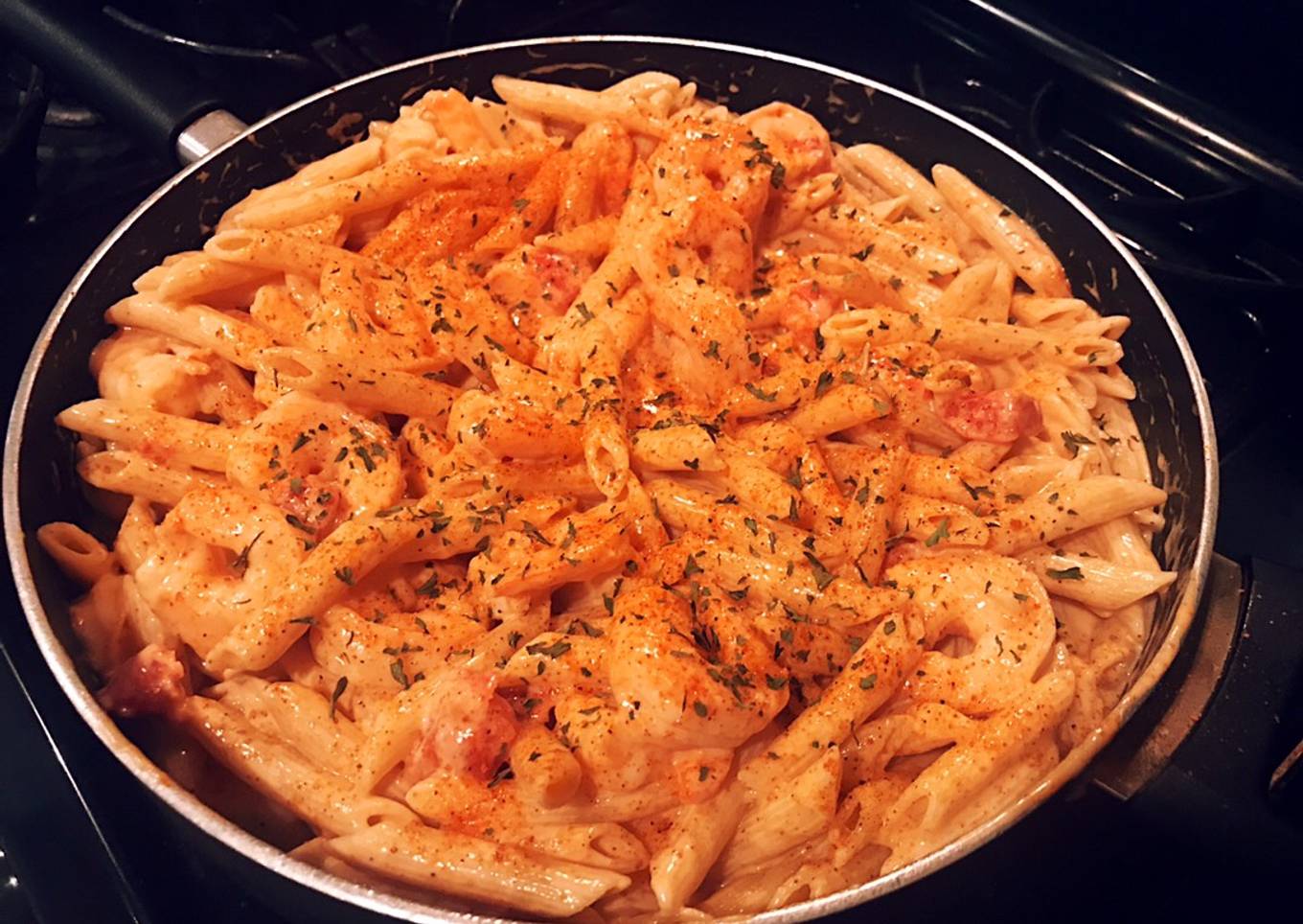 - Pour Alfredo Sauce into a large pan. Add 1 cup of heavy whipping cream, 3 Tbs of butter, cooked tomatoes & 2 Tbs of Cajun seasoning. Stir to combine. Heat over medium-low heat. Once warm add 2 cups shredded Parmesan cheese & 1 additional cup of heavy cream. Stir to combine. Once cheese is melted add cooked shrimp (With Juices) & pasta to sauce. Stir to combine. Sprinkle with more Cajun seasoning to your liking and parsley.