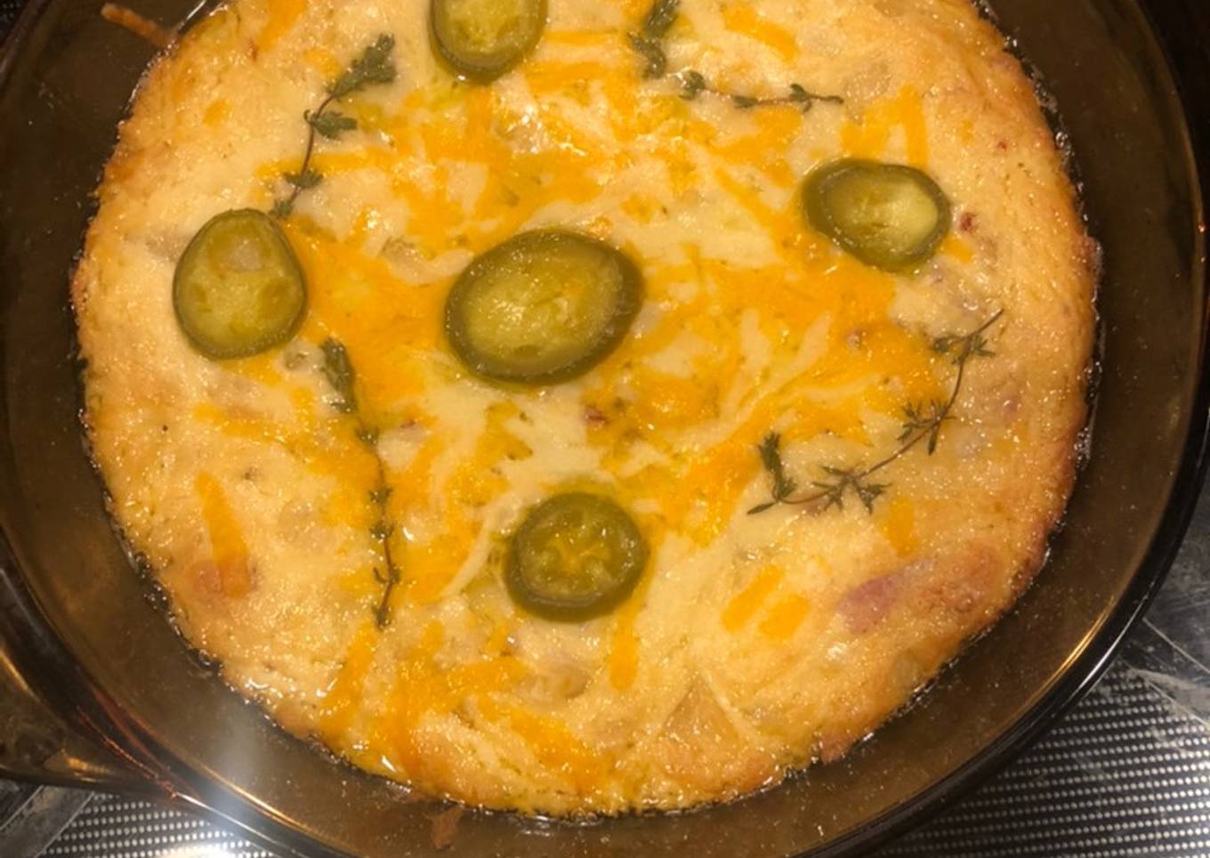 - Pour into baking dish. Crumble shredded cheese on top.