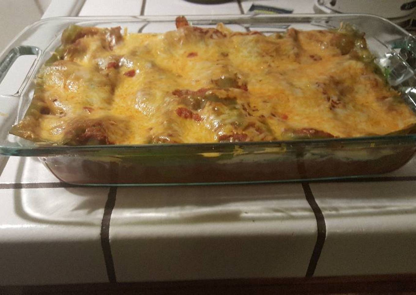 - Cook at 325 or 350 (depending on your ovens eficency) 30 min with foil covered, and 10 without to crisp the cheese. Let cool 5 minutes then cut and serve. (Check the middle is sufficiently cooked by seeing if the cheese is all melted and browned in the middle not individual shredded pieces anymore) leave in longer if needed.
