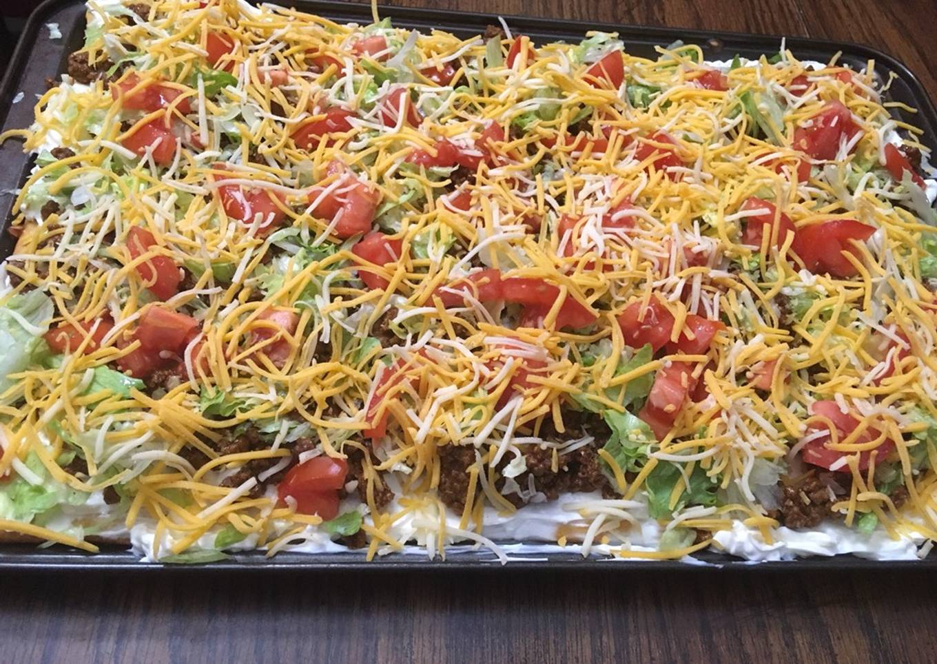 - You won’t completely cover the cream cheese layer with the ground beef; there’s plenty of other toppings so don’t worry.(I had enough)