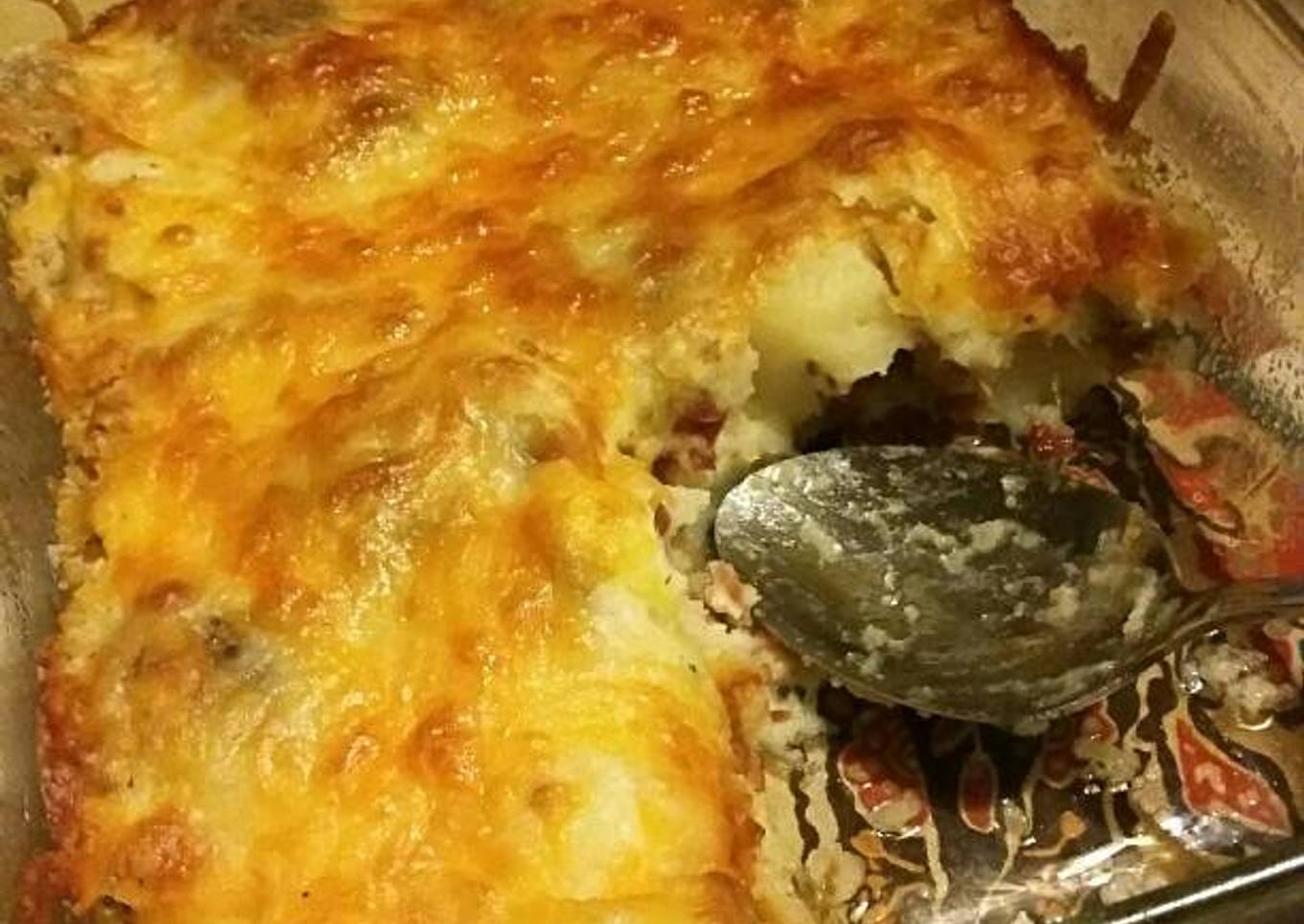 - Spread out in baking dish cover with shredded cheese. Bake uncovered 15 minutes or until cheese is golden and bubbly. Enjoy!