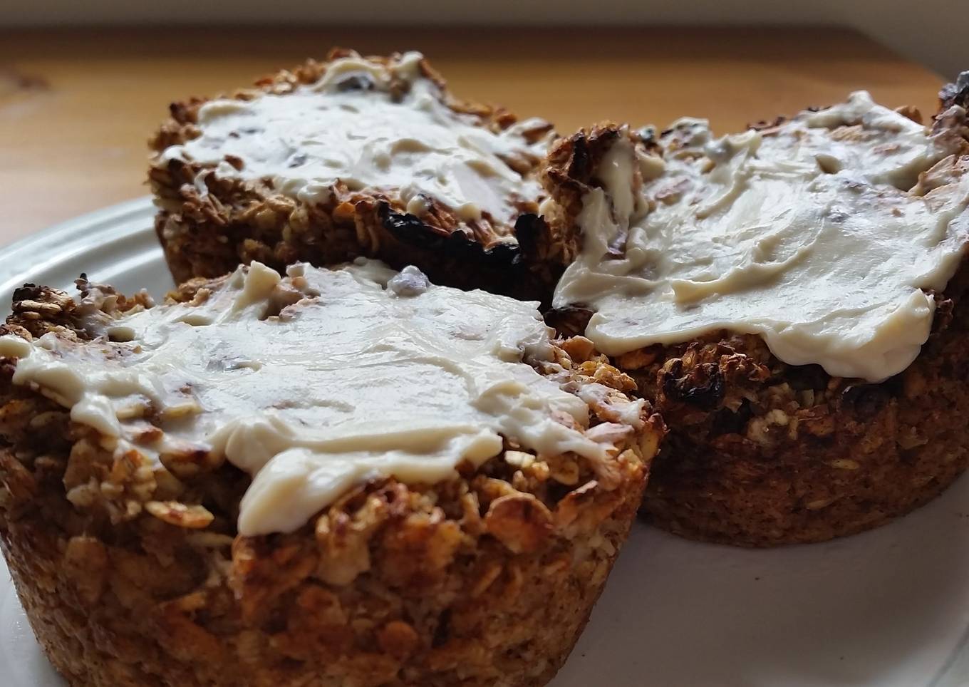 - Place 1 tablespoons full of cream cheese (or butter if you'd like) evenly(5ml) in the center of oatmeal bases.