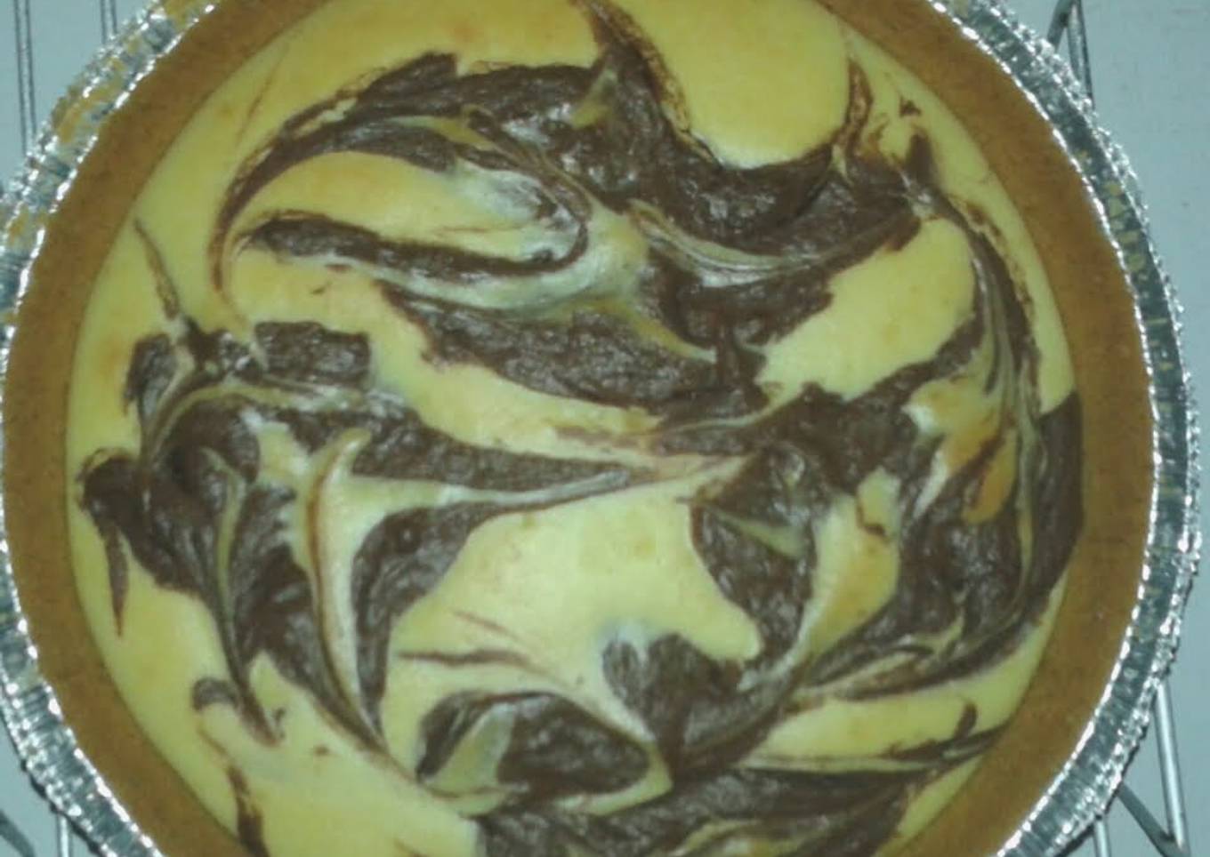 - Preheat oven to 350°F Fahrenheit. Cream together in an electric mixer , 2 cups sugar 1/2 tsp salt, with two pounds of cream cheese. Increase speed to high and beat until fluffy . Add the eggs one at a time, scraping down bowl after each addition. Continue to beat on high speed for about 3 minutes. Turn mixer off. Remove 1/3 of the mixture and put aside in a separate bowl. Add 2-3 tbs Hershey's Coca Powder and 2 heaping tbs of Nutella. Mix on medium speed until blended. Pour plain batter into prepared graham cracker crusts, leaving room for the chocolate batter. Spoon chocolate batter on top. Use a teaspoon and pull the chocolate through the batter forming a swirl pattern.