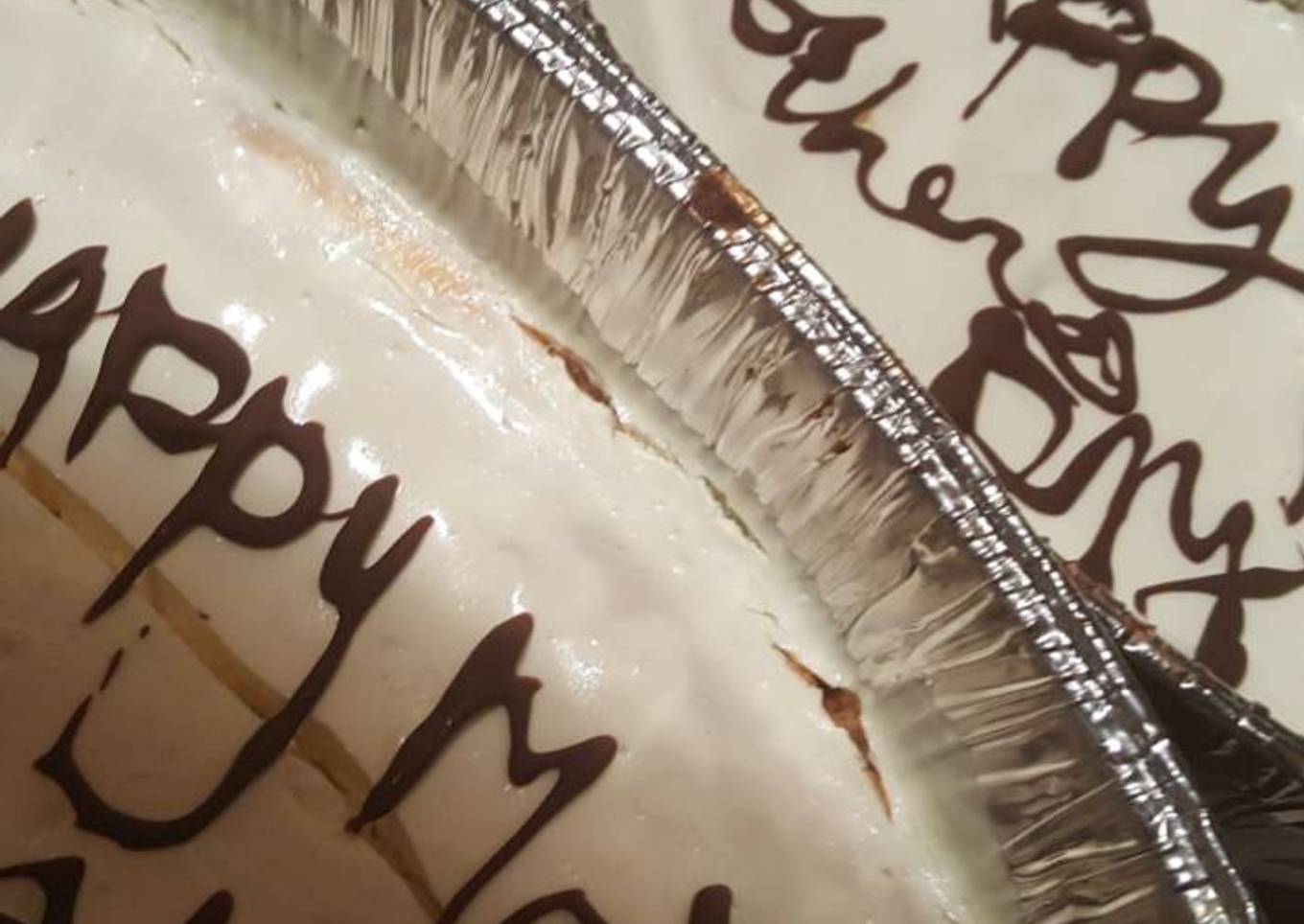 - After 45 minutes, remove the cheese mixture from the oven and spread the sour cream very gently over the cake. The cake will still be a bit soft so be careful not to break it